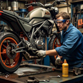 Comprehensive bike maintenance including oil change, chain lubrication, and air filter cleaning.